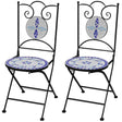 This set of mosaic chairs will make a decorative addition to your garden, patio, or balcony. It will be a pleasure to have a cuppa with your friends sitting on these chairs. Thanks to a strong powder-coated iron frame, this set is sturdy and durable. Due to the waterproof ceramic seat, these chairs are easy to clean. Delivery includes 2 chairs. Please note these chairs are not suitable to be left outside in cold condition.