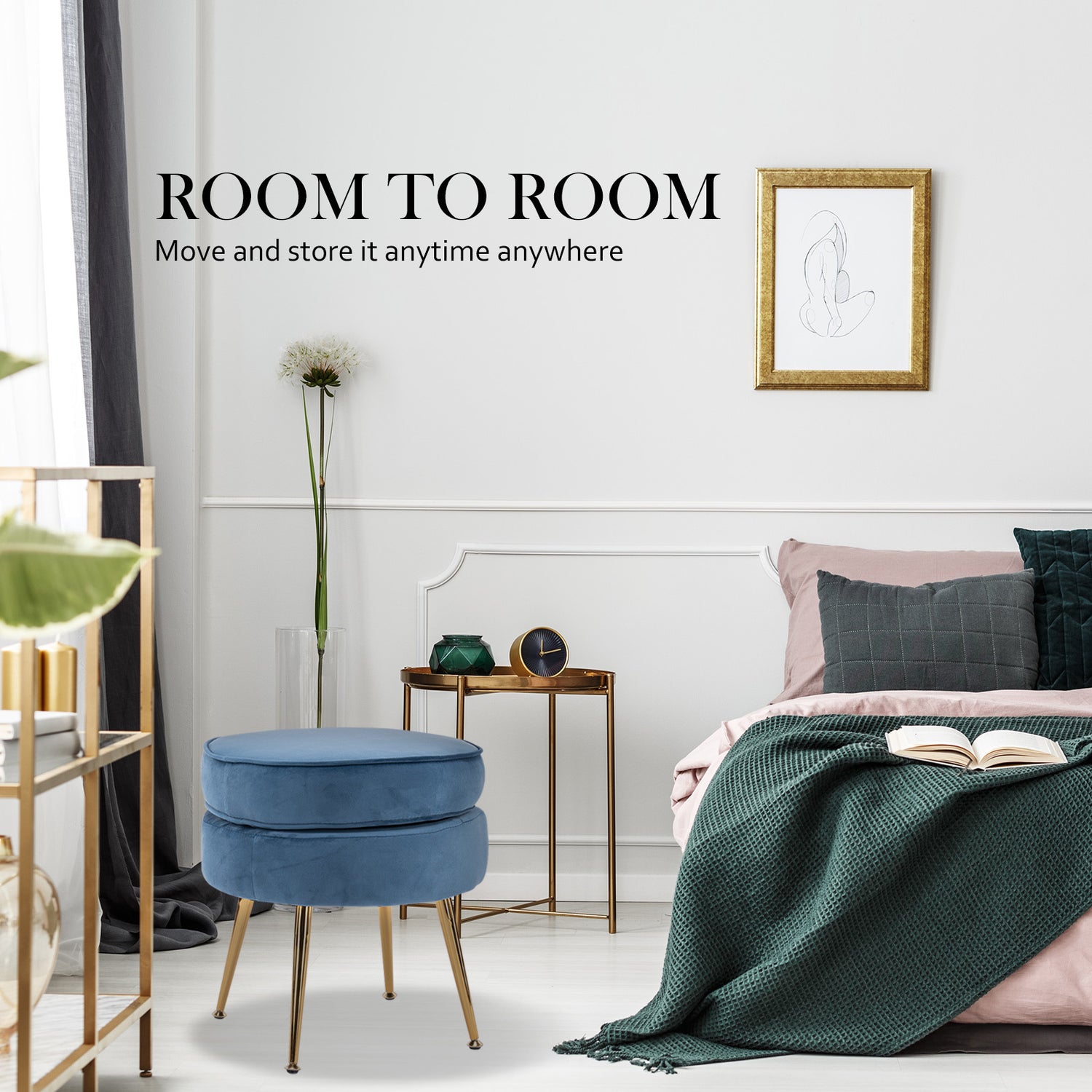 Foot Stool Ottoman Velvet Metal Leg Round - NAVY BLUE