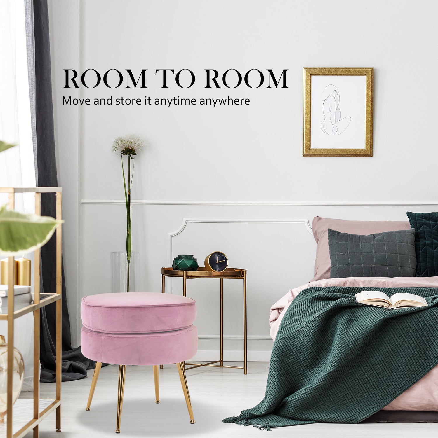 Foot Stool Ottoman Velvet Metal Leg Round - PINK