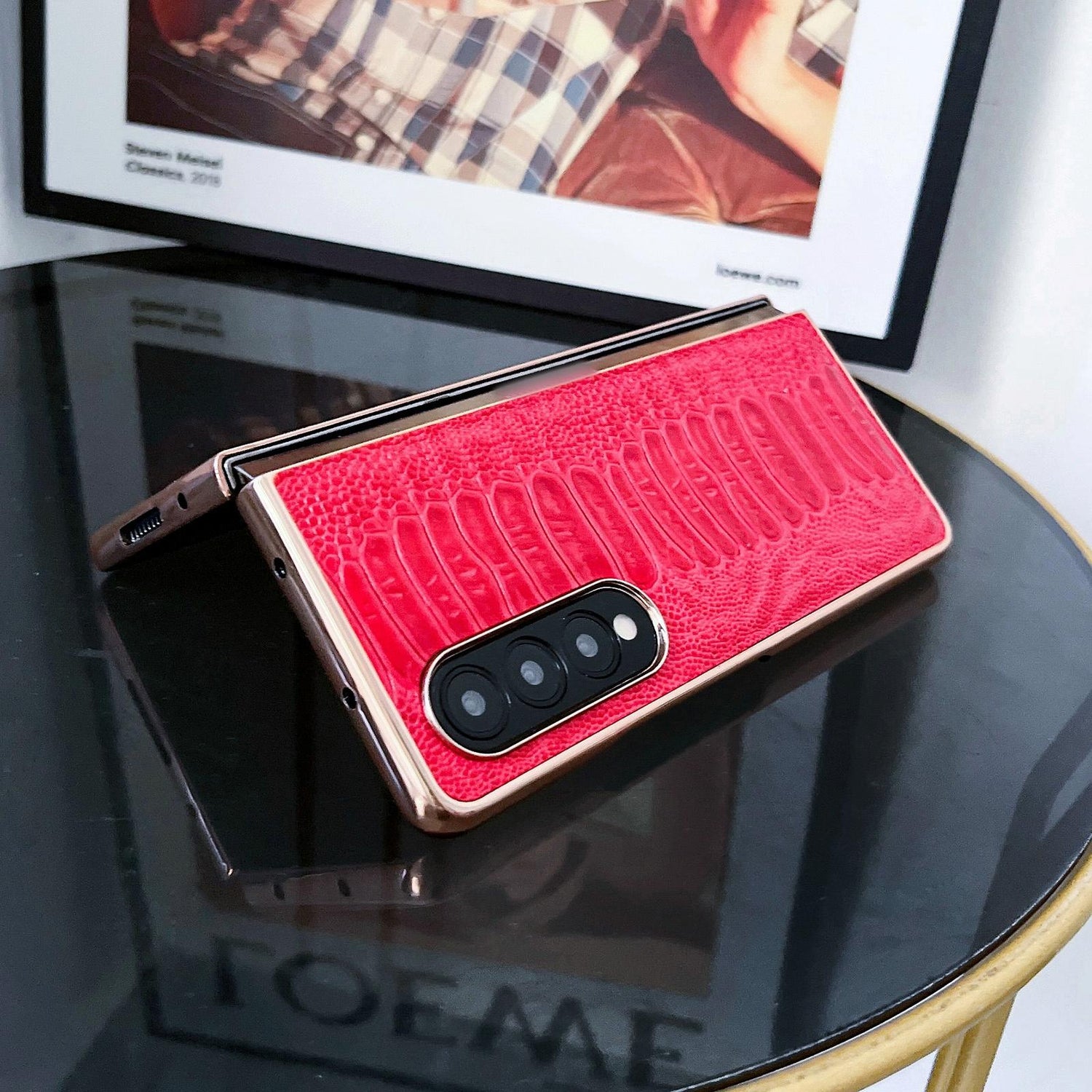 • 1 x For Samsung Galaxy Z Fold4 5G Genuine Leather Nano Plating Phone Case