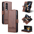 For Samsung Galaxy Z Fold4 5G Leather Magnetic Phone Case - Calf Texture - Dark Brown