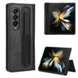 For Samsung Galaxy Z Fold4 5G Vintage Leather Phone Case With Magnetic Buckle - Black