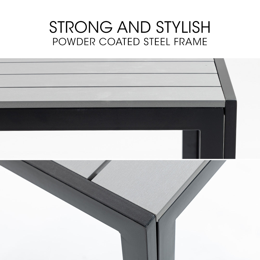- Premium natural-looking polywood tabletop that requires no upkeep