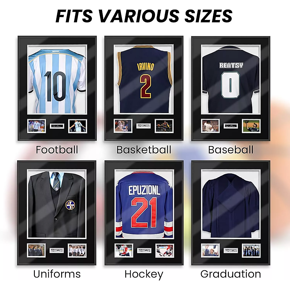 - Large dimensions (60 x 80 x 2.5cm) accommodate most sports jerseys, including baseball, basketball, football, soccer, and hockey.