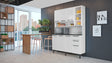 The Florenca kitchen unit features a sophisticated matte white finish paired with a tempered glass display door for a touch of modern luxury. Its stylish design is enhanced by matte black ABS handles and semi-gloss steel surfaces that resist everyday wear. Perfect for showcasing your favourite dishware while keeping other items neatly stored behind closed doors.
