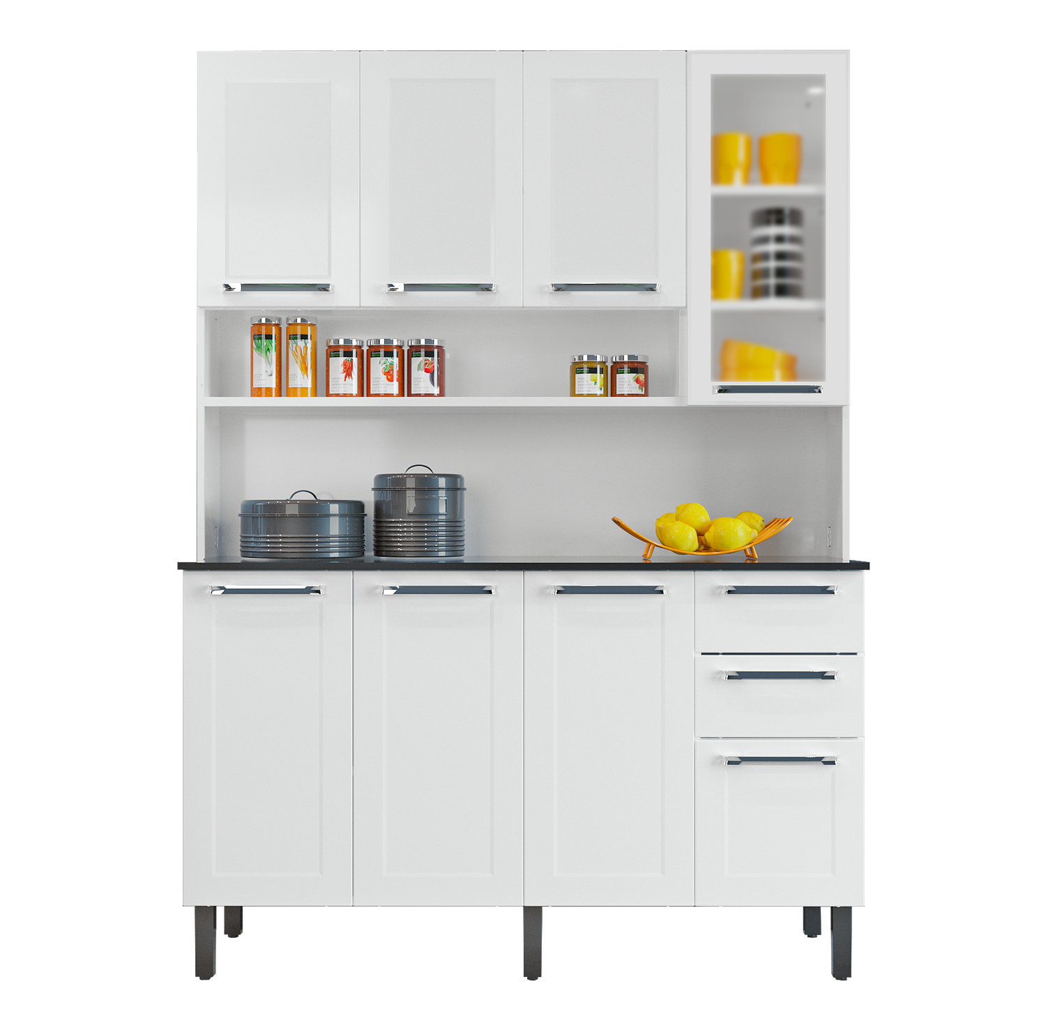 Maximise Space with the Florenca White Steel Kitchen Cupboard – 8 Doors + 2 Drawers