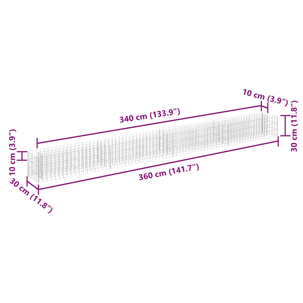 This gabion raised bed allows you to conveniently create a secure yet stylish border for a flower or plant bed in your garden or on your patio. The sturdy gabion is designed to be filled with rocks or gravel. Made of rustproof and weather-resistant galvanised steel, the gabion is very stable and durable. The transverse and longitudinal wires welded at every intersection offers extra stability to the gabion planter and also works as a mesh grid. Our gabion planter is easy to assemble. Please note that stones and plants are not included in delivery.