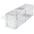 Live traps are a safe and humane means to catch, transfer and release unwanted animals to keep them from your land and buildings. This live trap, featuring one door at the front, is simple to operate and safe to use around children and pets. The mesh holes (2.54 x 2.54 cm) are small, so escapes and the stealing of bait are prevented. The live trap is made of sturdy wire mesh with an additionally reinforced frame, and galvanised for maximum rust resistance. It is equipped with a folding handle for convenient transport both with and without an animal inside. This live trap is perfect for getting rid of any unwanted visitors, or capturing your runaway pets such as cats, guinea pigs, etc. The live trap has no sharp edges that may cause injury to the caught animals.