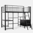 Gaming Loft Bed with Desk and Storage Cabinet, Steel Metal Frame, Space Saving Design, for Single Mattress, Matte Dark Grey