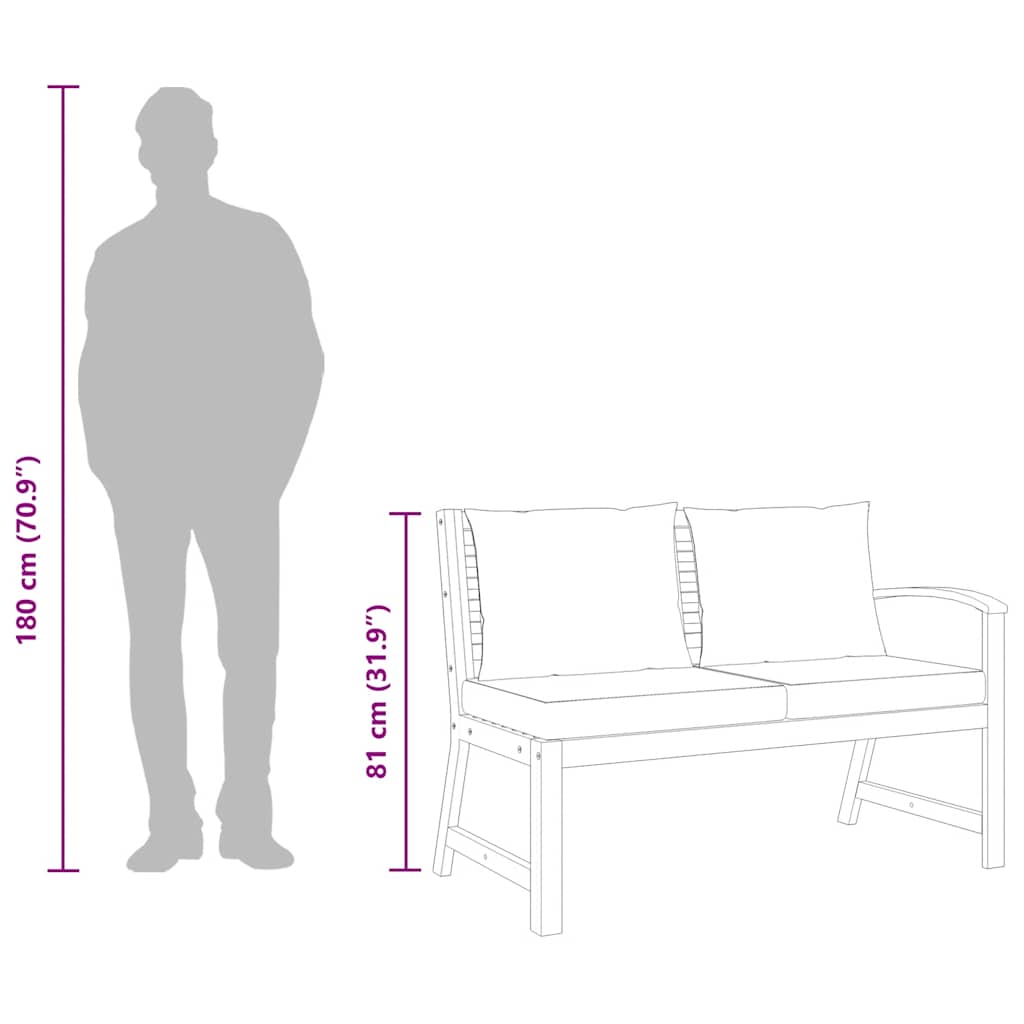 This stylish garden bench will add a touch of rustic charm to your patio or other outdoor living space! The bench is made of high-quality solid acacia wood, a tropical hardwood, which is weather-resistant and highly durable. Thanks to the oil finish, the lounge seat has a warm colour and is easy to clean and maintain. In addition, delivery includes seat and back cushions with thick padding for ultimate comfort. This piece can be combined with other products in our shop so that customer can build their own sofa set.
