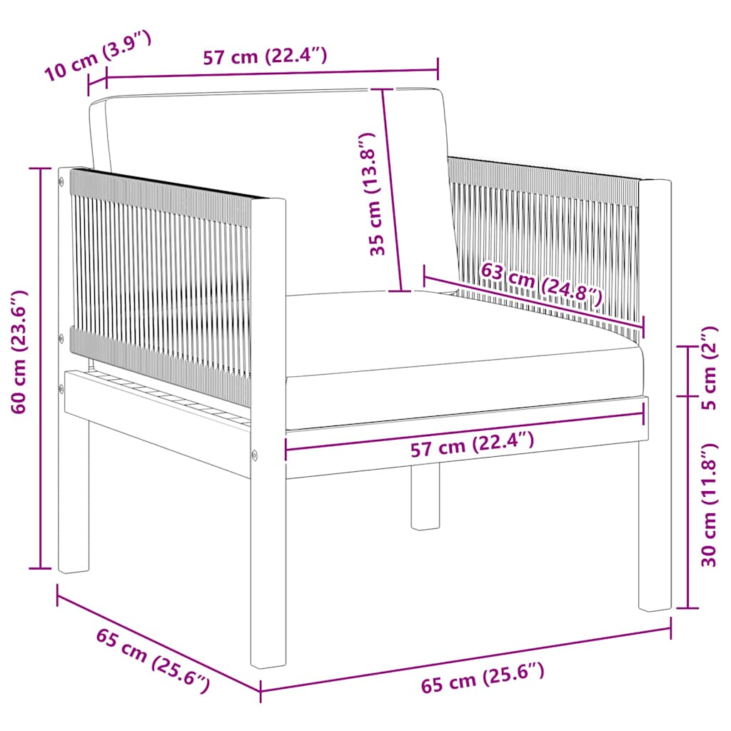 With a practical and rustic design, this wooden garden chair takes your outdoor living space to the next level! The chair features extreme durability, thanks to the solid acacia wood material. Hence, it is suitable for outdoor use. With a distinctive rope design, the outdoor seating is an eye-catcher. Additionally, the outdoor chair is lightweight and easy to move around. The thickly padded cushions ensure your seating comfort. Relax and enjoy your leisure time on this lovely chair!