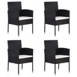 Garden Chairs with Cream White Cushions 4 pcs Black Poly Rattan