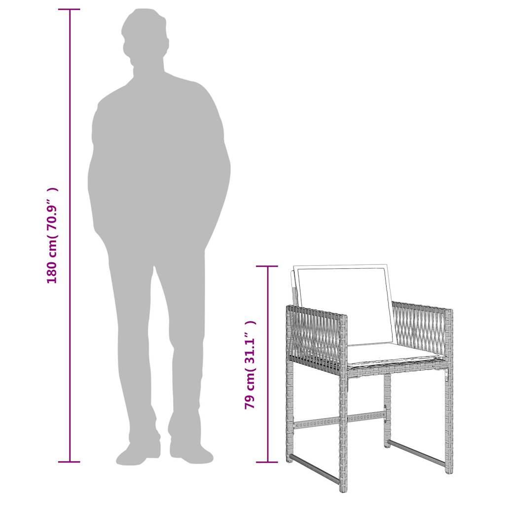 Relax and enjoy the outdoors in these comfortable garden chairs! Durable material: PE rattan, also known as poly rattan, is a strong, low-maintenance synthetic material that looks like natural rattan. It's lightweight, easy to clean, and commonly used for outdoor furniture due to its durability and weather-resistant properties.Comfortable seat experience: This outdoor furniture, complete with thickly padded cushions, offers a comfortable seating experience.Flap backrest: These chairs have a flap backrest that can be folded down for compact storage.Removable and washable cover: These cushions feature removable covers for easy washing and maintenance. The chair cushion covers have a flap at the back for easy attachment to the chairs.Robust and stable frame: The powder-coated steel frame ensures the garden furniture is strong and stable for daily outdoor use. Good to know:To make sure your outdoor furniture stays beautiful, we recommend protecting it with a waterproof cover.