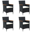 These poly rattan garden dining chairs will become the focal point of your garden or patio! It will be a great choice for al fresco dining or relaxing in the garden. Featuring a powder-coated steel frame wrapped with poly rattan, the outdoor chair is sturdy and easy-to-clean. The armrests are made of solid acacia wood, a tropical hardwood, which will bring a rustic charm. Additionally, the dinner chair is designed with a curved backrest and armrest, making it an ergonomic shape for you. The thick and soft seat cushion adds extra comfort while seating. The cushion covers with zips can be easily removed and washed. Thanks to the lightweight construction, the garden chair is easy to move. Note: In order to extend the life of your outdoor furniture, we recommend you to clean it regularly and do not leave it outdoors without protection unnecessarily.Clean: Use a mild soap solutionStoring: If possible, store in a cool, dry place indoors. If the product is stored outdoors, protect it with a waterproof cover. Wipe and dry the excess water or snow from flat surfaces after a rain or snowfall. Allow sufficient air circulation to avoid moisture-related damage.