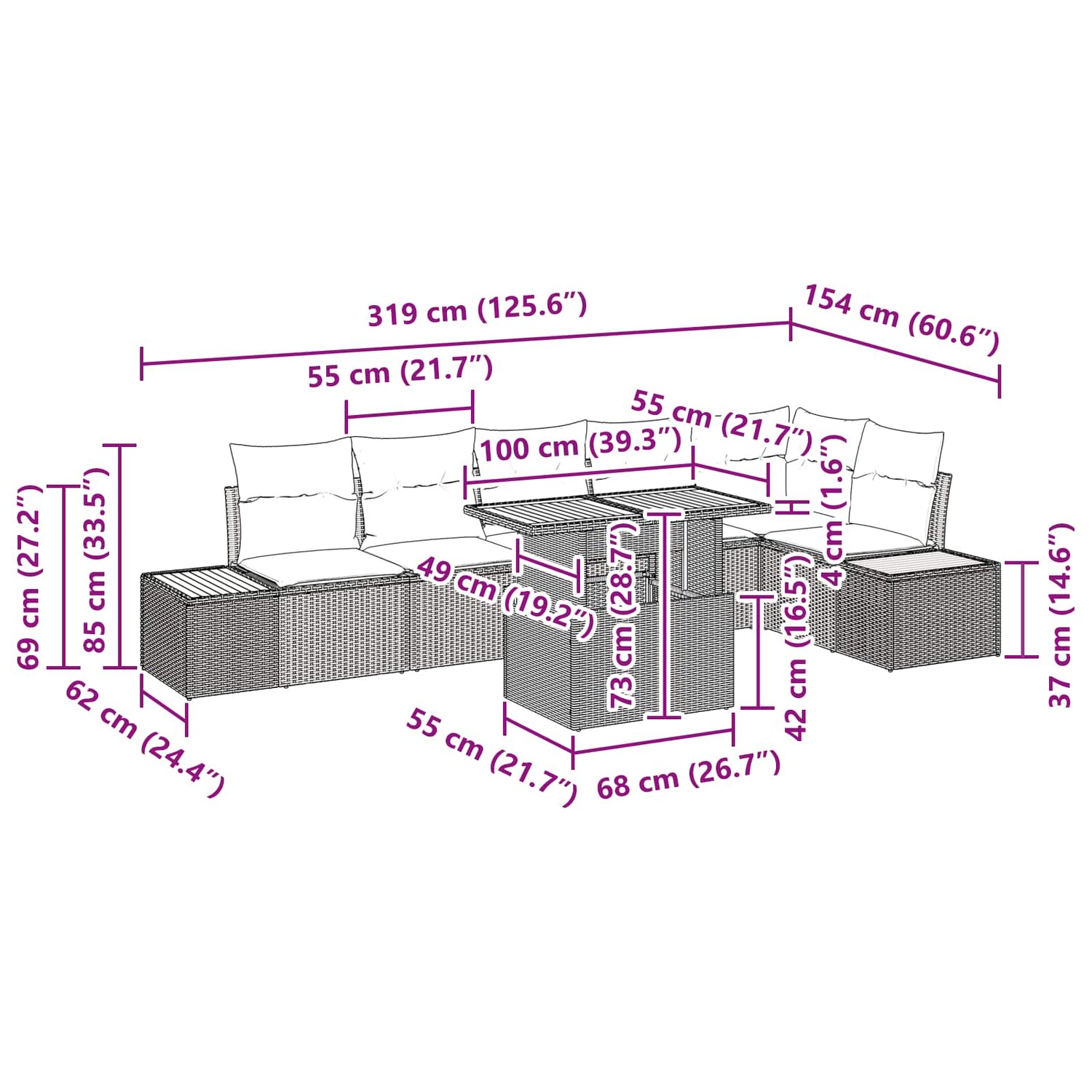This garden furniture set turns your outdoor space into a chill retreat, perfect for kicking back or hosting your mates. With straight lines and fresh touches, it jazzes up your garden while keeping comfy and practical. Whether it’s for a sunny barbecue or a relaxed night under the stars, this modular set fits the bill perfectly. It offers heaps of seating and a polished finish, making sure your guests feel welcome in style. Rugged Materials: Made with poly rattan and a sturdy acacia wood frame, this set stands tough against the elements. The poly rattan design is durable, blocking UV rays and keeping its colour and shape. The powder-coated steel adds extra strength, so it looks great, season after season. Awesome Components: This garden set offers all sorts of seating options, like side sofas and a corner seat, each with handy storage. The armrests and supportive back are made from poly rattan, so they're comfy too. Every piece adapts easily, fitting in with your garden style. Useful Features: With adjustable feet, this furniture set stays steady on uneven ground, perfect for any patio or garden. You can easily tweak it to set up how you like, ensuring your comfort and making the most of your space. What’s Included: Get two side sofas, a corner seat, three centre seats, and a garden table, all with storage. The whole setup is spacious and inviting, perfect for gatherings or just soaking up the outdoors. Maintenance Tips: To keep it looking sharp, cover the furniture when you’re not using it. A quick wipe-down with a dry cloth after the sun or rain keeps it pristine and ready for next time.
