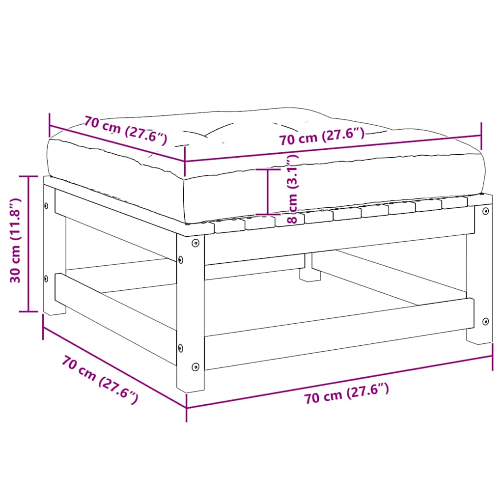 The garden footstool is an excellent choice for you to relax and enjoy the weather, take a nap, or chat with your family or friends. The footrest is made of solid pinewood, making it sturdy and stable. The cushion adds extra comfort. Additionally, this wooden footstool also features a modular design, making it completely flexible and easy to move around to suit any setting. You can combine it with other modular segments available in the drop-down menu to create your own personal garden lounge set configurations! Note: In order to extend the life of your outdoor furniture, we recommend you to clean it regularly and do not leave it outdoors without protection unnecessarily.Clean: Use a mild soap solution.Storing: If possible, store in a cool, dry place indoors. If the product is stored outdoors, protect it with a waterproof cover. Wipe and dry the excess water or snow from flat surfaces after a rain or snowfall. Allow sufficient air circulation to avoid moisture-related damage.