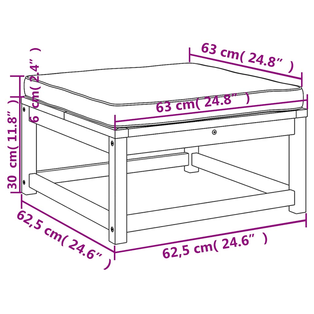 This wooden garden footstool with cushion will make a great addition to your garden, terrace, or patio for chatting with family and friends or just enjoying the weather. Solid acacia wood: Solid acacia wood is a beautiful natural material. Acacia wood is a tropical hardwood, which is dense, sturdy, and durable.Versatile usage: This outdoor ottoman can not only be used to sit or relax your feet, but it can also be used as a coffee table to hold your placed drinks, food, and other decorations.Slatted design: The slatted design of the garden ottoman effectively prevents water from pooling, ensuring that the seat remains dry and free from potential rot.Modular design: This patio ottoman features a modular design, making it completely flexible and easy to move around to suit any setting. You can combine it with other modular segments available in the drop-down menu to create your own personal garden lounge set configurations! Good to know:To make sure your outdoor furniture stays beautiful, we recommend protecting it with a waterproof cover.
