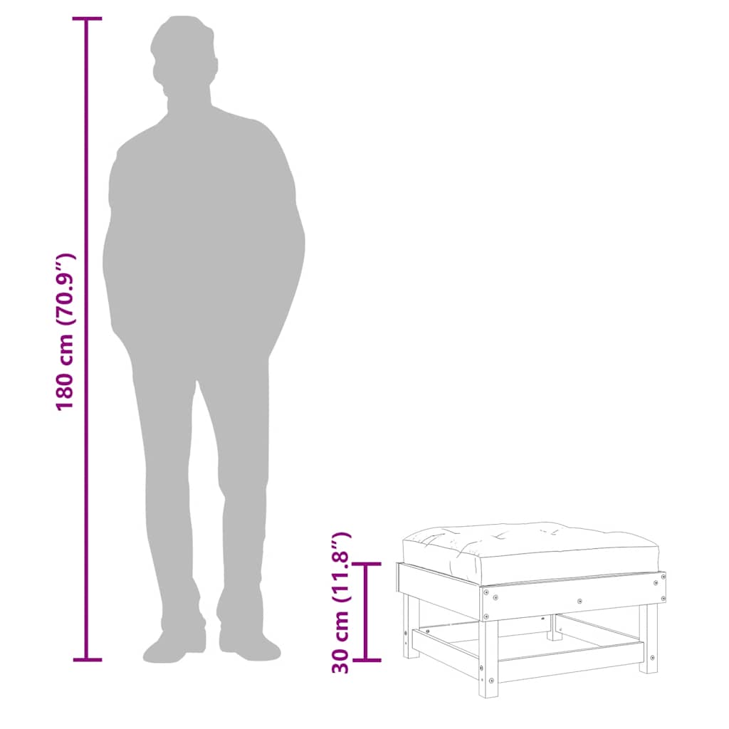 These wooden garden footstools, standing out with the slatted design and soft cushions, will make a great addition to your garden, patio, or terrace for enjoying a cosy time with your family or friends. Solid pine wood: Solid pine wood is a beautiful natural material. Pine wood has a straight grain, and the knots give the material its signature, rustic look.Sturdy and stable frame: The wooden frames make the footstool sturdy and stable for daily outdoor use.Soft cushion: The thickly padded seat cushion of the footrest adds the utmost comfort.Modular design: The outdoor footstool is flexible and easy to move around. You can combine it with other modular segments in the webshop to create your own personal garden lounge set configurations! Good to know:To make sure your outdoor furniture stays beautiful, we recommend protecting it with a waterproof cover.