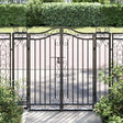This ornamental garden gate with elegant posts makes an ideal entryway for the fence around your garden or patio. Durable material: The metal garden gate is made of wrought iron and powder-coated for lasting durability. Wrought iron is a type of iron that is tough, malleable, corrosion-resistant and ductile, making it perfect for outdoor applications.Lockable system: The wrought iron gate comes with a bolt hinge for the quick lock to increase security.Post design: The wrought iron posts help you achieve a strong gate support system and make an attractive addition to your yard or garden.Elegant look: Elegant shapes and decorative accents make the fence gate a visual highlight of the outdoors.