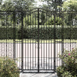 This ornamental garden gate with elegant posts makes an ideal entryway for the fence around your garden or patio. Durable material: The metal garden gate is made of wrought iron and powder-coated for lasting durability. Wrought iron is a type of iron that is tough, malleable, corrosion-resistant and ductile, making it perfect for outdoor applications.Lockable system: The wrought iron gate comes with a bolt hinge for the quick lock to increase security.Post design: The wrought iron posts help you achieve a strong gate support system and make an attractive addition to your yard or garden.Elegant look: Elegant shapes and decorative accents make the fence gate a visual highlight of the outdoors.