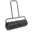 This garden lawn roller, with 5 spiked aerator clamps, is a sturdy and handy tool for any gardener to maintain a beautiful and healthy lawn. Durable material: The grass roller is made of durable iron and is built to last. The iron frame ensures stability and sturdiness as well.Large capacity: The garden roller provides a large capacity for filling it with sand. It can be easily sealed and emptied.Practical spike: The lawn aerator with the practical spike on the clamp is meant to help in reducing soil compaction and allow water, air, and nutrients to get to the root system for a greener and healthier lawn.Easy storage: The garden lawn roller is lightweight for easy storage and transportation.Wide applications: You can use the handle to push or pull the aerator roller with less effort when packing down newly sown seed or uneven ground. In addition, the rolling lawn aerator with 5 spiked clamps is the ideal tool for gardeners who want to create a lively lawn. Good to know:Before you assemble the lawn aerator clamp, make sure to remove the scraper plate.