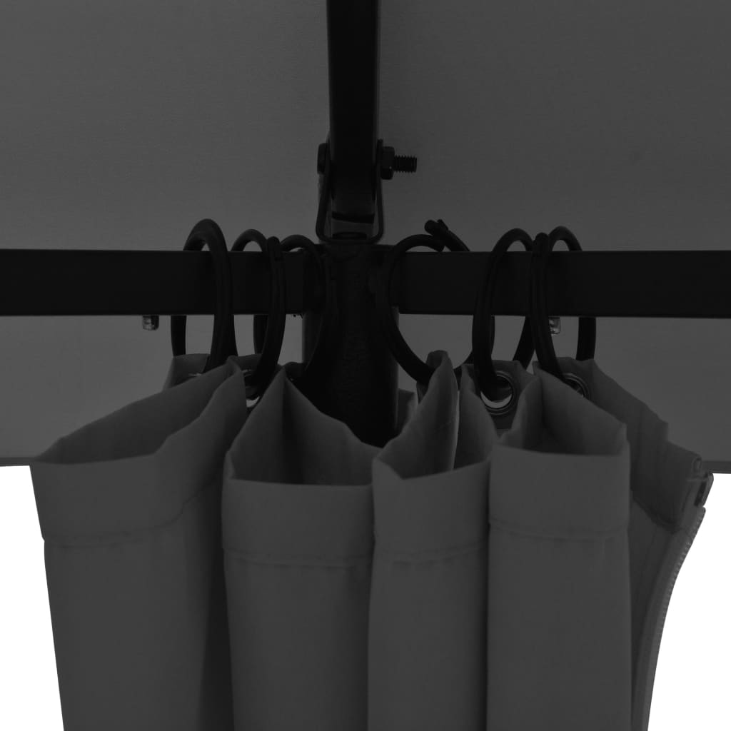 This gazebo with curtains features a classic and graceful design. It will make the perfect sunshade retreat for outdoor events, such as dinners, BBQs, family gatherings and so on. The water-resistant roof and curtains are made of polyester fabric with PA coating. The frame is solidly constructed from strong powder-coated steel, and therefore it is resistant to rust and considerably stable. The canopy features a stylish double-vented design that allows for better ventilation. Additionally, the easy-to-clean polyester curtains can be closed to provide more privacy or kept out of the way with the included tiebacks. This gazebo will definitely be a perfect choice for your garden get-togethers. The tent is easy to assemble. NOTE: This product should NEVER be used under bad weather, such as strong wind, heavy rain, snow, storm, etc.