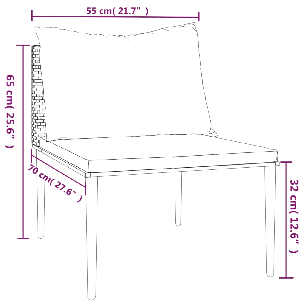This trendy garden middle sofa, featuring an elegant and contemporary design, is suitable for dining or relaxing in your garden. Durable material: PE rattan, also known as poly rattan, is weather resistant and easy to clean. It remains beautiful on the outside for a long period of time. It offers great quality, convenience and an aesthetic look.Sturdy frame: The steel frame makes the garden sofa sturdy and stable for daily outdoor use.Comfortable seat experience: The backrest adds extra seating comfort for the outdoor sofa. Also, the thickly padded cushions provide comfort for your sitting time.Modular design: The garden seating is flexible and easy to move around, so you can combine it with other modular segments in the webshop to create your own personal garden lounge set configurations! Note:To make sure your outdoor furniture stays beautiful, we recommend protecting it with a waterproof cover.