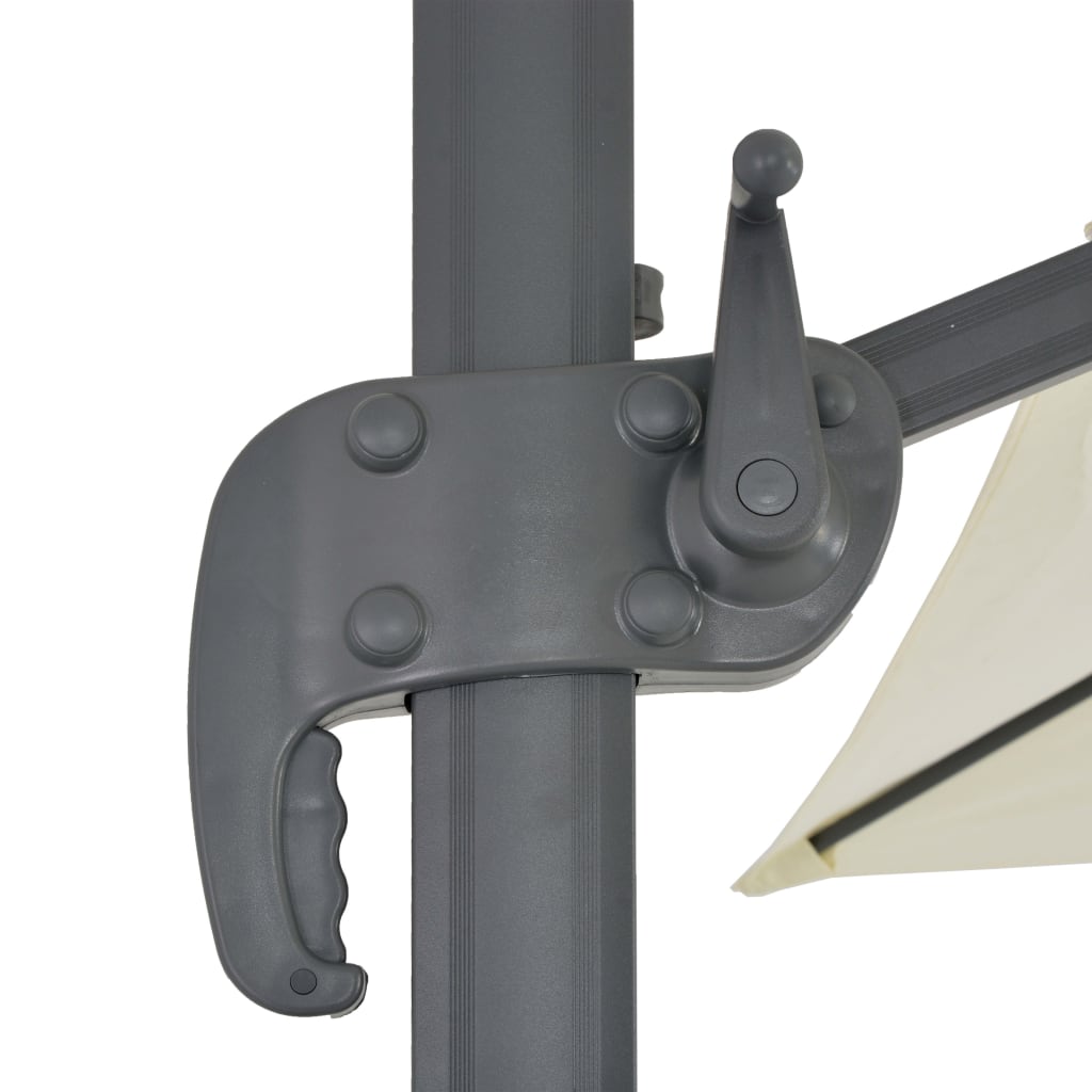 This garden parasol features a sturdy aluminium frame, a large UV-resistant cover and an extra portable base, so it is perfect for protecting you from sunlight. This garden umbrella can be easily opened and closed by simply turning the knob on the pole. The aluminium pole, along with the 8 sturdy aluminium ribs, makes the outdoor umbrella very durable. The exclusive design of this parasol allows you to tilt and rotate it in 360 degrees to block the sun. Moreover, the large, detachable steel cross base adds stability without taking up too much space. The extra parasol base consists of four separate parts and can be filled with 60 litres of water or 80 kg of sand. It is ideal for steadying parasols with a cross base. Pouring out the filler, the parasol base is light in weight, which makes it easy to carry.