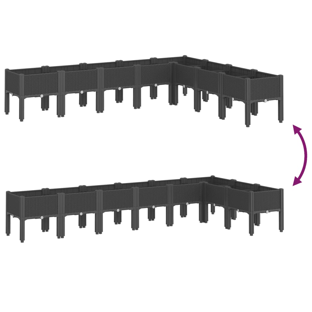 This garden planter is an excellent choice for climbing plants in your garden, patio and terrace. Durable material: Polypropylene is a popular plastic that is also one of the most used materials in outdoor furniture. It's lightweight, tough, and resistant to impact.Generous capacity: The outdoor planter provides plenty of space for growing all your vegetables, flowers and other plants.Bottom design: The ideal bottom layer helps retain moisture and allows for easy drainage.Beautiful rattan look: The patio planter is designed with a rattan look, bringing an elegant charm to your living space.Elevated design: The elevated design of this planter box can protect your plants from weeds and pests.