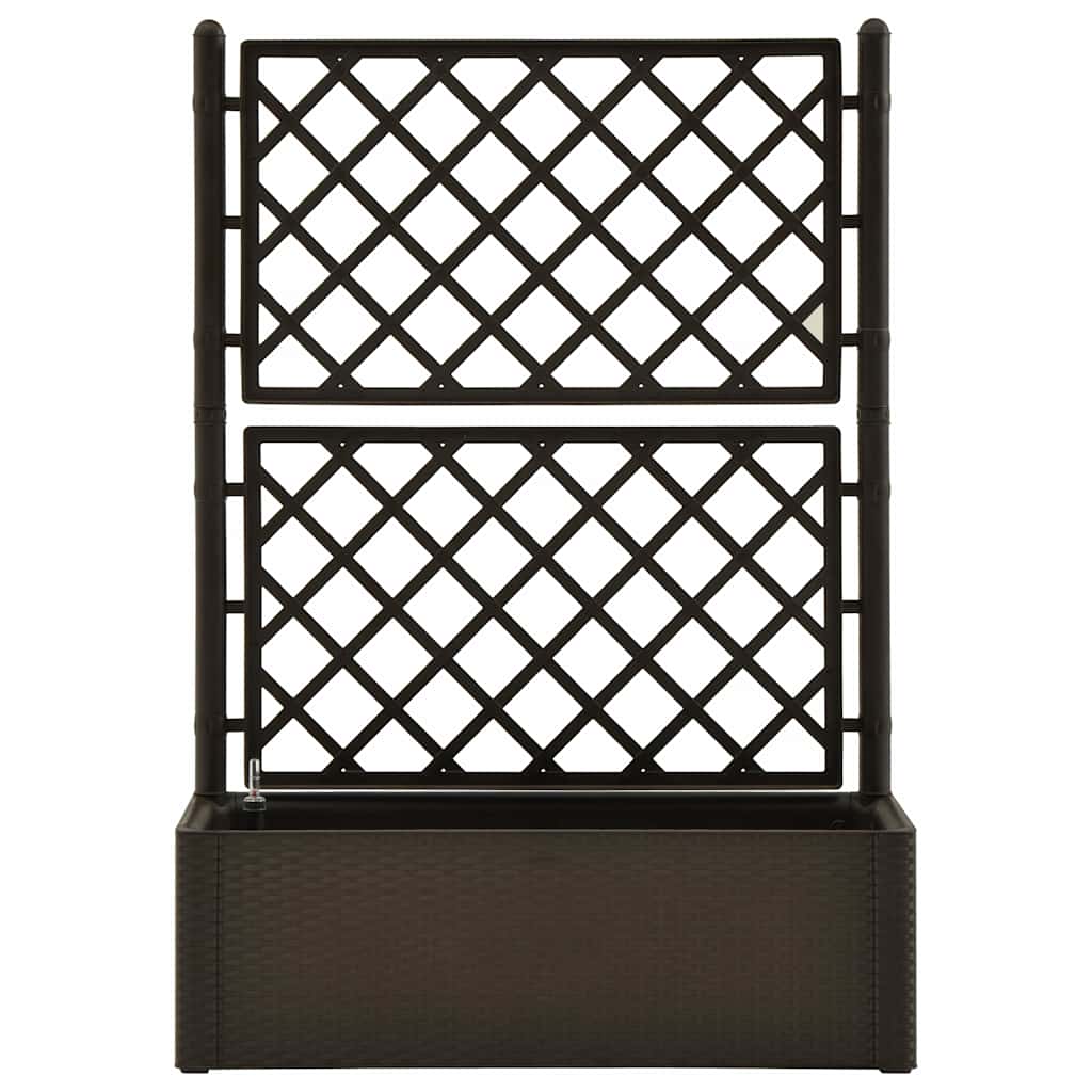 Create a lovely backdrop for your flowers with an elegant, functional and unique self-watering raised bed! This trellis planter has a large flower box that can accommodate a large number of green plants and flowers. The built-in trellis offers excellent support for climbing plants, like herbs, tomatoes, beans, etc. Made of robust UV, weather and frost-resistant plastic, it is suitable for indoor and outdoor use. The design resembles a deceptively real rattan structure. The material is washable and easy to clean. Additionally, this box can automatically water plants by wicking moisture from its 90 L water reservoir and has water overflow holes to prevent overwatering. The level indicator is included.