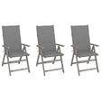 This trendy garden reclining chair set with cushions elevates the comfort of your outdoor space! These armchairs are made of solid acacia wood with a grey wash finish, a hardwood with dense grains. These beautifully-designed outdoor chairs are stable, durable and eye-catching. The chair's backrest can be adjusted in 5 reclining settings, so you can always set the most comfortable position as per your preference. What's more, the included cushions provide extra comfort while relaxing. It is made of 100% polyester that has been treated to make it waterproof. Each cushion has an elastic strap and two sets of ropes to fix it on the chair tightly. These wooden chairs are perfect for dining with your family, or just enjoying the weather in your garden.