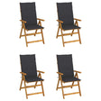 This wooden garden reclining chair set with cushions is designed to upgrade your comfort level while relaxing outdoors. It is ideal for chatting with family and friends or just enjoying the soothing sunbathing! These outdoor chairs are made of solid acacia wood with an oil finish, a hardwood with dense grains. Solid acacia wood has the strength to bear the weight and stand the wear and tear of time. With the oil-finished surface, these chairs are easy to clean with a damp cloth. Additionally, the backrests of these armchairs are adjustable in 5 reclining positions, enabling you always to find the most pleasant position. What's more, the included cushions provide extra comfort while lounging or dining. Each cushion has an elastic band and two sets of ropes to fix it on the chair tightly.
