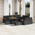 This Garden Sofa Set really brings a modern vibe to your outdoor area, making it great for relaxing and socializing. With its sleek lines and simple design, it turns any garden or terrace into a stylish spot to hang out. Built for the warmer months, the poly rattan and powder-coated steel ensure it stays looking fresh all season, with comfy seating and removable cushions for added ease and comfort. Materials: Made from poly rattan and powder-coated steel, this set is sturdy yet stylish. These materials are UV-resistant, so they’ll keep your furniture looking awesome and are easy to clean. Plus, the solid acacia wood adds a cool vintage vibe and stability outdoors. Included Components: The set includes comfy seating with flat poly rattan armrests for an ergonomic fit. Each piece has well-padded outdoor cushions that can be removed for washing or swapping, making hygiene a breeze. The seat surface features elegant brown acacia wood, strong enough for drinks or décor. Features /Function /Design: Thanks to UV-resistant materials, this furniture holds up to sunlight and lasts longer. The design allows for easy cushion removal so you can clean or change your style without hassle. These features create a neat mix of good looks and practical use. Recommended Uses: Perfect for social gatherings, this sofa set boosts those garden vibes while offering practical, comfy seating. Its versatile style suits any outdoor occasion, whether you're chilling with family or hosting friends in style. Care &Maintenance: To keep it in top shape, cover the set when it’s not in use. A quick wipe with a damp cloth takes care of dust. These simple maintenance tips help it look good for years to come.