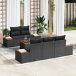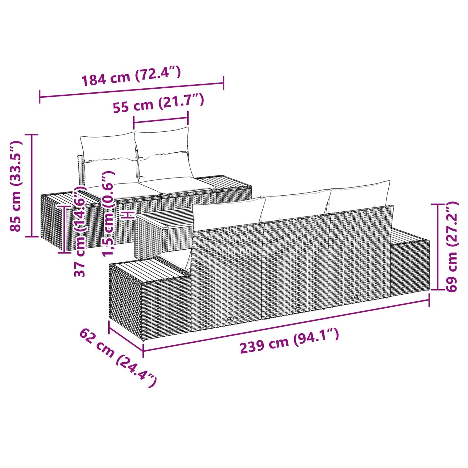 The Garden Sofa Set with Cushions Poly Rattan is made for the outdoors, fitting in beautifully with modern gardens. With sharp lines and a simple design, it’s perfect for lounging around, socialising, or having quiet evenings outside. The strong poly rattan surface looks good and lasts, keeping it attractive all year round. Materials: This set combines sturdy poly rattan and steel, mixing style and strength. The poly rattan has a hand-woven feel that's tough against the sun and bad weather, while the powder-coated steel frame gives it stability and durability. Included Components: You get four sofas with built-in storage and water-resistant bags, a central seat with similar features, and a neat garden table. Comfy polyester cushions are included, blending practicality with great looks. Features / Function / Design: Enjoy adjustable feet and a modular setup with this sofa set. The adjustable feet help level it out, while the modular design lets you change the layout as you like, accommodating different occasions or family sizes. Recommended Uses: Perfect for open-air spaces, garden setups, or any outdoor spot, this sofa set ticks all the boxes—whether it’s a cosy family catch-up or an alfresco dinner. Its stylish vibe suits both modern homes and traditional gardens. Care & Maintenance: To keep it looking great, bring the cushions inside during bad weather and cover it when not in use. Just use a damp cloth to wipe down surfaces—no harsh chemicals needed!
