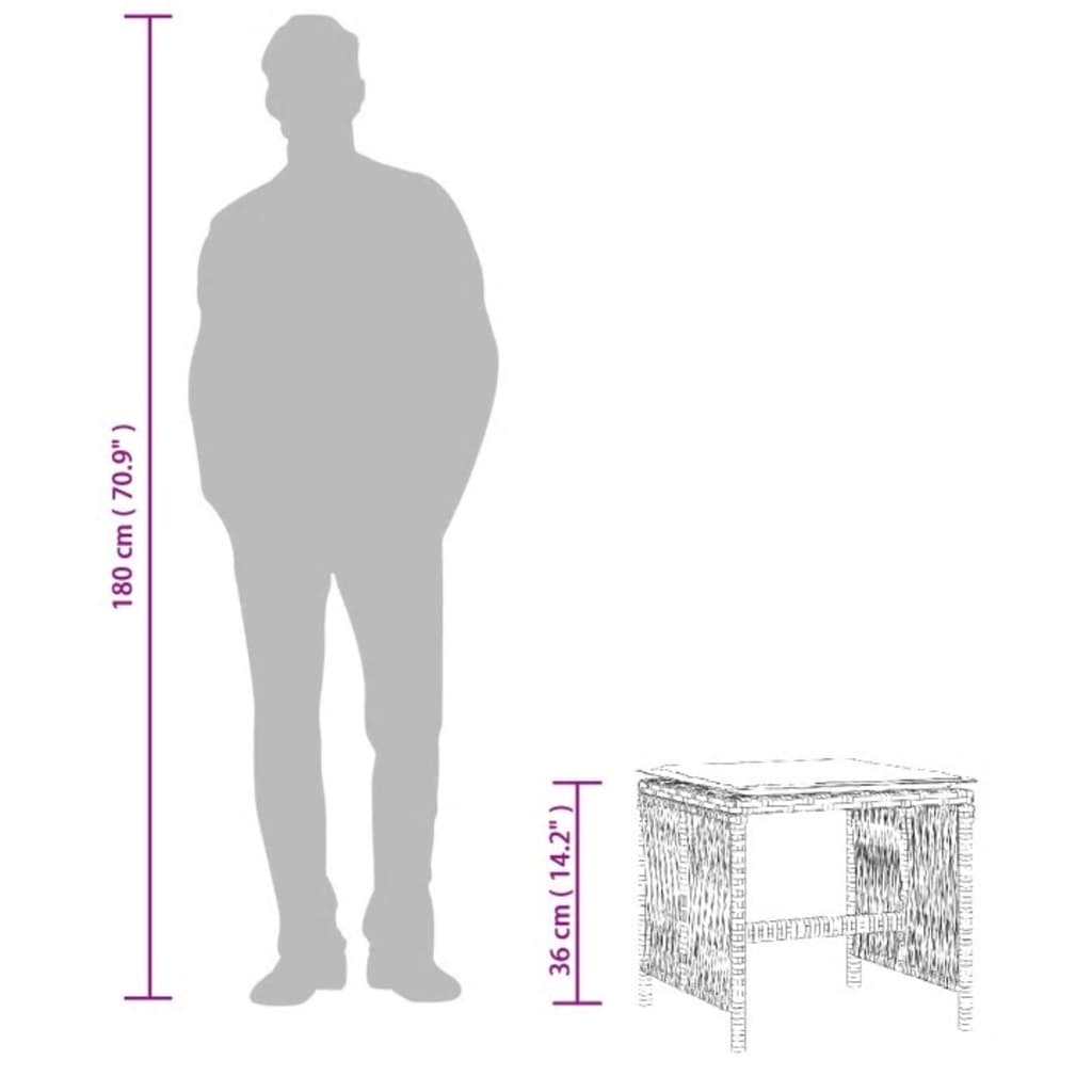 Relax and enjoy the outdoors in these comfortable garden stools! Durable material: PE rattan, also known as poly rattan, is a strong, low-maintenance synthetic material that looks like natural rattan. It's lightweight, easy to clean, and commonly used for outdoor furniture due to its durability and weather-resistant properties.Comfortable seat experience: This outdoor furniture, complete with thickly padded cushions, offers a comfortable seating experience.Removable and washable cover: These seat cushions feature removable covers for easy washing and maintenance. Robust and stable frame: The powder-coated steel frame ensures the garden furniture is strong and stable for daily outdoor use. Good to know:To make sure your outdoor furniture stays beautiful, we recommend protecting it with a waterproof cover.