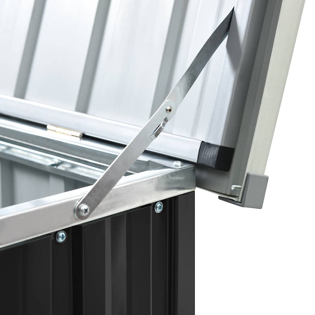 This stylish storage box is an ideal solution for decluttering your garden, patio or terrace. Versatile usage: The spacious garden box is excellent for storing cushions, pillows, blankets, and other items. It can also be used as a toolbox with its solid construction.Durable material: The storage chest is made of sturdy galvanised steel suitable for both indoor and outdoor use.Stylish design: The garden storage box has an understated yet timeless design that blends into every decor.Good to know:To prevent damage from heavy snow buildup, we recommend clearing the roof regularly during winter.
