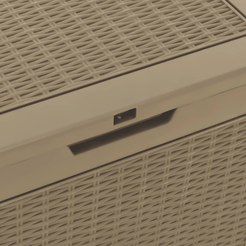 The garden storage box is a perfect solution to keep your outdoor area neat and tidy. Durable material: Polypropylene (PP) is a popular plastic that is also one of the most used materials in outdoor furniture. It's lightweight, tough, and resistant to impact. Also, its resistance to UV rays and weathering makes it easy to clean and maintain.Ample storage space: The outdoor storage box has a generous capacity of 118 L, making it perfect for storing large items like garden tools, patio furniture cushions, and pool toys.Imitation rattan look design: The blanket box features an imitation rattan design that adds a touch of natural charm to your outdoor living space.Convenient lid and side handles: The lid of the tool chest opens easily and wide, providing easy access to your items. The ergonomic side handles are designed for comfortable and effortless carrying.Practical top: With the lid closed as a tabletop, the storage case is perfect for keeping your phone, book, snack, or drink within reach. Note:To make sure your outdoor furniture stays beautiful, we recommend protecting it with a waterproof cover.