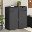 This garden storage cabinet is perfect for keeping your outdoor furniture cushions, gardening supplies, pool towels, and other items organised and easily accessible. Durable material: PE rattan, also known as poly rattan, is a strong, low-maintenance synthetic material that looks like natural rattan. It's lightweight, easy to clean, and commonly used for outdoor furniture due to its durability and weather-resistant properties.Ample storage space: This outdoor storage cabinet has a large space to store your garden tools, pool toys, outdoor cushions, and more.Robust and stable frame: The powder-coated steel frame ensures the garden furniture is strong and stable for daily outdoor use. Practical doors: Both 2 doors are equipped with stainless steel door knobs and magnets for easy opening and closing. WarningTo prevent it being overturned, this product must be used with the provided wall attachment device. Good to know:To make sure your outdoor furniture stays beautiful, we recommend protecting it with a waterproof cover.