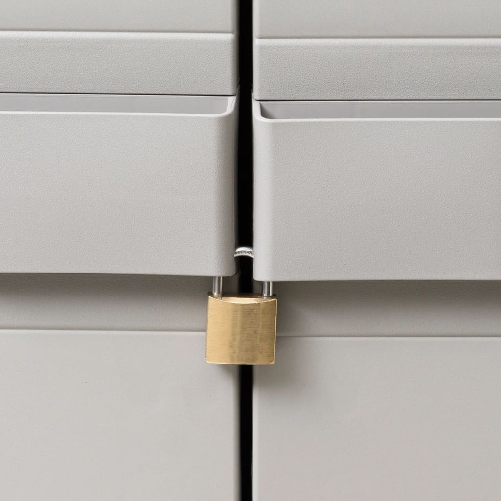 Our high-quality storage cabinet is ideal for organising and storing your household supplies, tools or other items in the garden or on the patio, etc. This cabinet will blend into any decor with its timeless design. This TÜV-GS certified cabinet is made of sturdy, durable polypropylene (PP). The spacious storage cabinet has ventilated shelves which can be adjusted to accommodate items of different sizes. The garden cabinet can be locked with a padlock for added safety (the lock is not included). This outdoor storage cabinet is very easy to clean. The garden cabinet has a compact design and will make the most use of limited space. Assembly is easy.