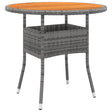 Combining both style and function, this garden table is the centerpiece of your garden, patio or any other living space. Featuring a powder-coated steel frame wrapped with poly rattan, the outdoor table is durable. Its tabletop is made of solid acacia wood, a hardwood with dense grains. This beautifully-designed patio table is stable, durable and eye-catching. Additionally, the exquisite craftsmanship and beautiful wood grains make every piece slightly different from the next. Note: In order to extend the life of your outdoor furniture, we recommend you to clean it regularly and do not leave it outdoors without protection unnecessarily.Clean: Use a mild soap solution.Storing: If possible, store in a cool, dry place indoors. If the product is stored outdoors, protect it with a waterproof cover. Wipe and dry the excess water or snow from flat surfaces after a rain or snowfall. Allow sufficient air circulation to avoid moisture-related damage.