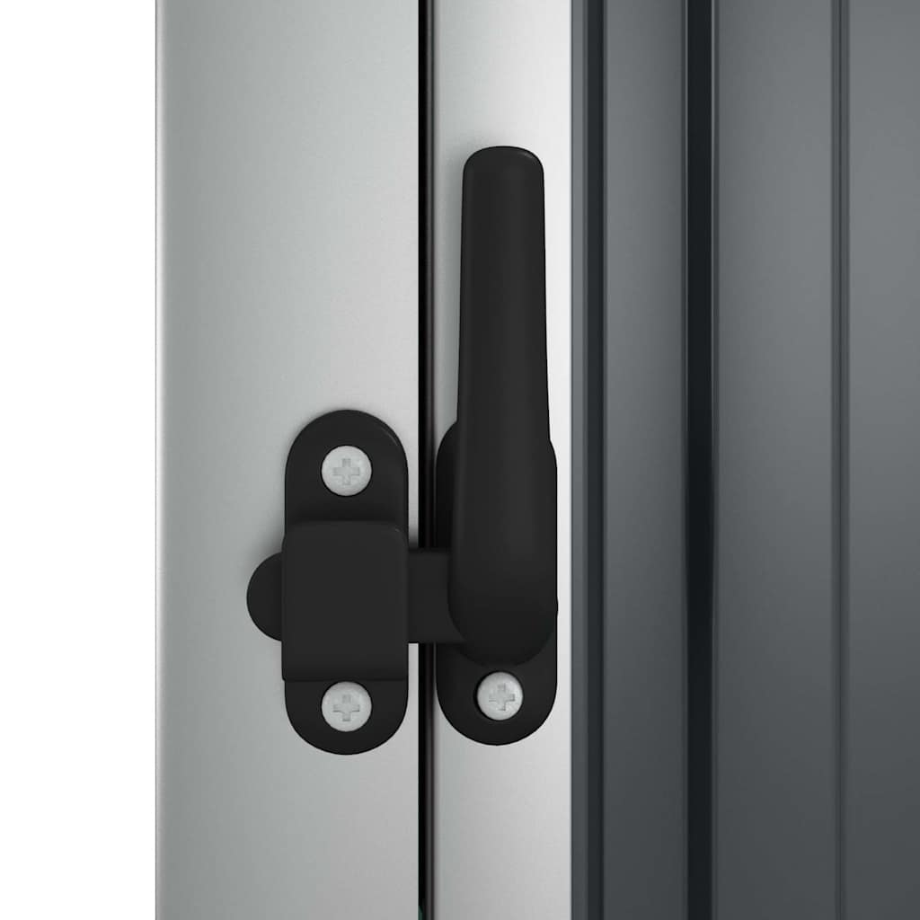 Keep your garden organised with this stylish metal storage shed, combining practical functionality with a contemporary look. Its robust construction provides a secure space for all your outdoor tools and equipment. Convenient Access: Equipped with an ergonomic door handle, this shed allows easy opening and closing, giving you swift access to gardening tools, lawn equipment, or seasonal items whenever required. Modern Aesthetic Appeal: Finished in sleek anthracite grey, the shed complements contemporary outdoor spaces, adding a clean and sophisticated touch to patios, backyards, or garden areas. Weatherproof Roof Design: The sloping roof effectively channels rainwater away, preventing moisture accumulation and corrosion, ensuring reliable protection for your equipment throughout the year. Spacious Storage Solution: Built from galvanised steel with reinforced framing, this shed provides ample room for lawnmowers, hoses, garden furniture, or other essentials, keeping your outdoor area tidy and organised.