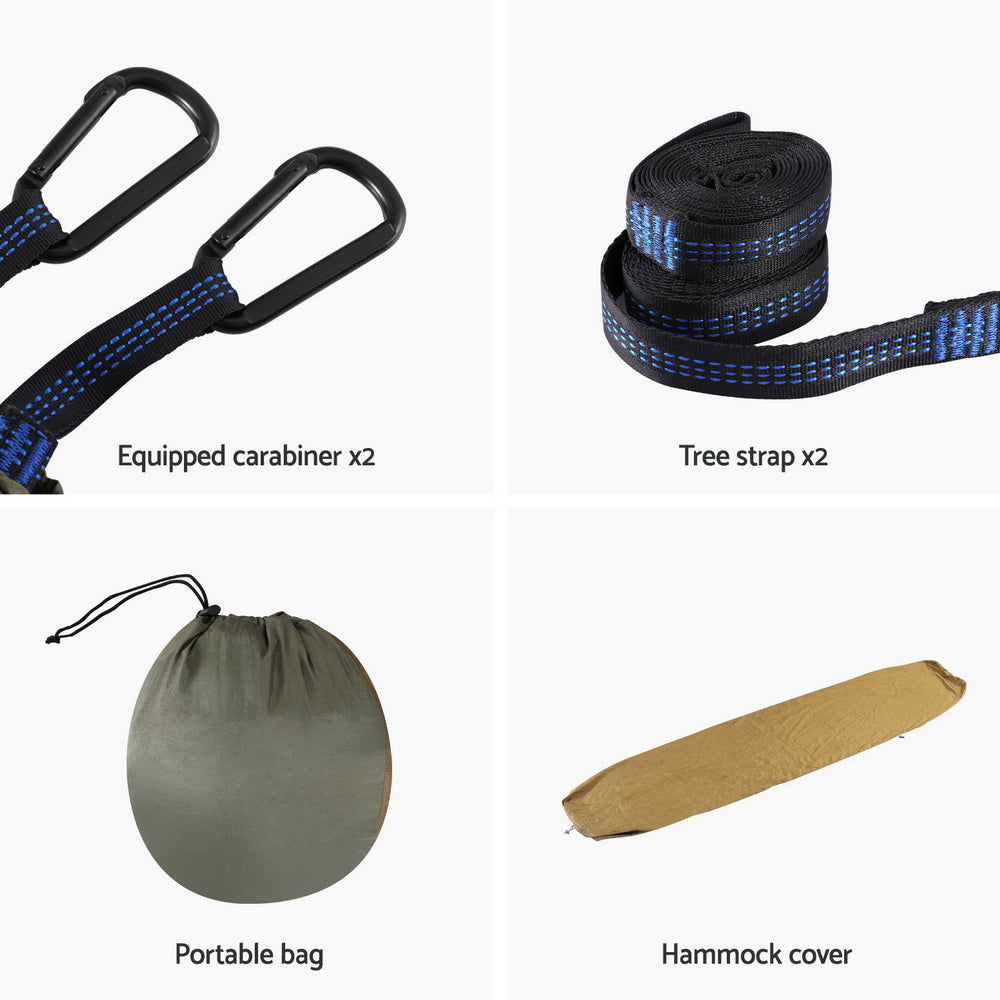The Gardeon Hammock Bed is an ideal sleeping solution for carefree camping and nights under the stars. The hammock bed is a 2-in-1 solution that acts as a regular hammock for afternoon relaxation, or can transform into a sleeping hammock during the evening. The hammock features a breathable mosquito mesh to keep out insects during the night. With sun-proof shades on both ends, you can relax and enjoy the outdoors without worrying about harmful UV rays. The hammock bed also comes with a storage bag and inner pocket, allowing you to keep your essentials within reach. Your purchase comes with a steel carabiner and a tree strap for easy installation, making sleeping outdoors simple. Experience ultimate relaxation and convenience with the easy-to-install Gardeon Outdoor Hammock Bed.