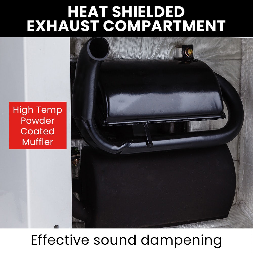 - Enclosure: 3mm High Tensile Powder Coated Steel, Sound Insulated Dampened