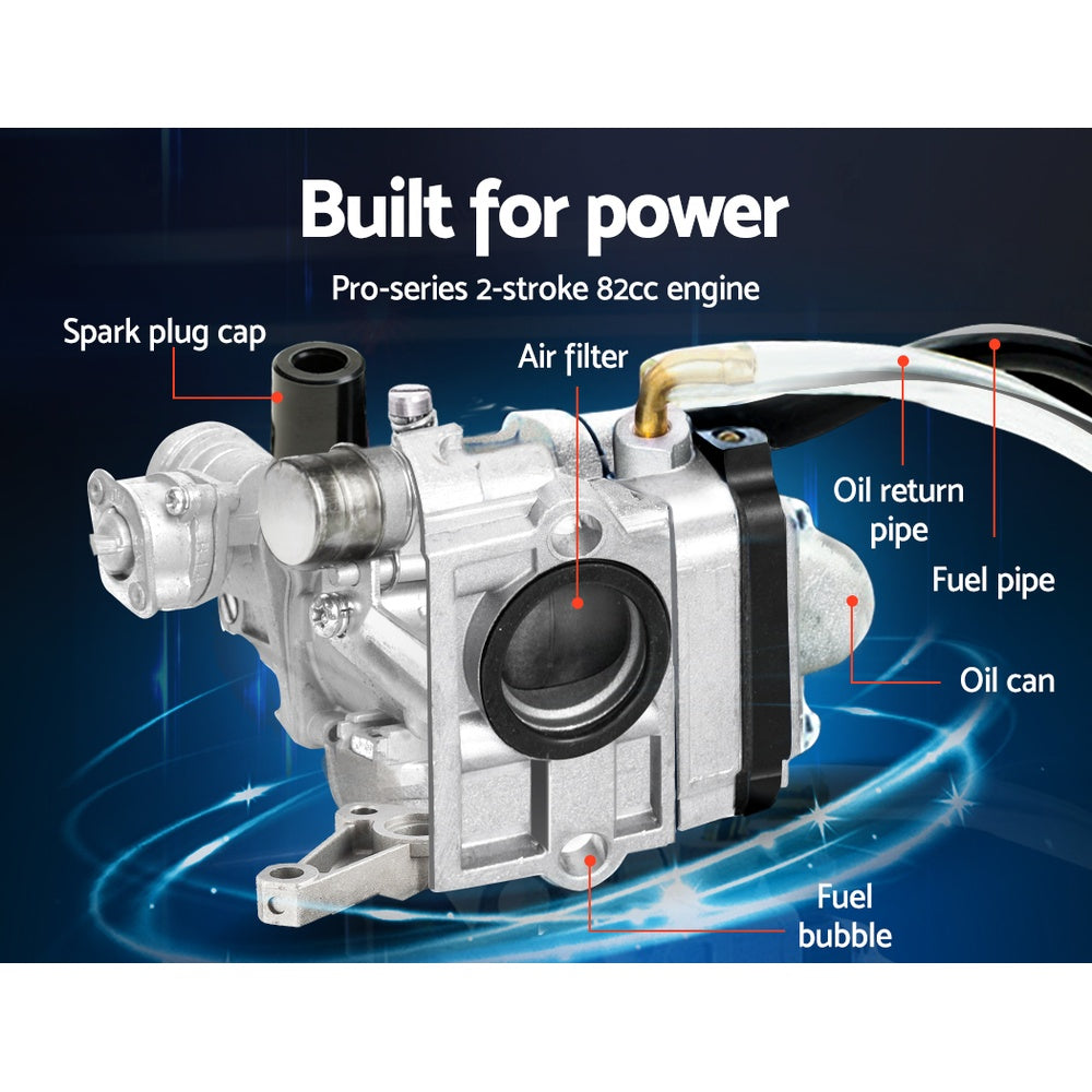 Get the earth moving quick and easy with the GIANTZ Hand-held Tiller. Featuring a 72cc 10,000rpm 2-stroke petrol motor, the tiller churns out soil deep and wide with its 16 teeth of hardened steel tines. The Four blades allows you to till an extra-wide swath of 300mm and up to 150mm in depth. In other words, you only need one pass with the tiller to pulverise the soil and get the right seedbed for your favourite crops. Operating the tiller is just as easy with its pull-start improved engine, steady handle and quick-release hand throttle control and all-terrain rubber tyres to transform back-breaking tilling work into a ground-breaking stroll. And when the tilling is done, just fold away the tiller and store with the rest of your tools. Ideal for the home gardener or small-scale commercial grower.