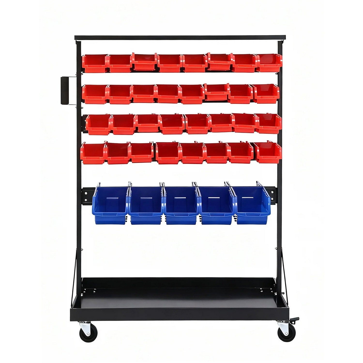 Get your workshop organized this Spring! The Giantz 74 Bin Rack is a double-sided mobile storage solution. Featuring a 5-tier steel frame and 74 removable bins, this parts bin rack is perfect for garage storage. It rolls on lockable wheels and includes top/bottom trays for extra space.