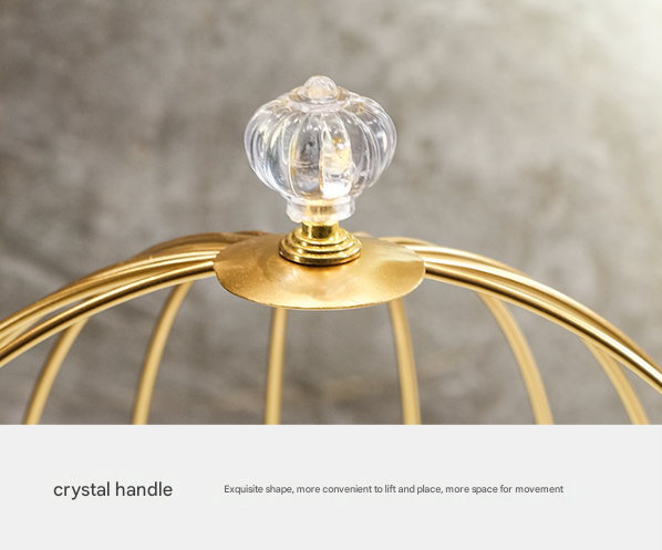 - Elegant Birdcage Design: Features a beautiful and open birdcage silhouette with a luxurious gold-tone finish, topped with a delicate crystal-style knob for an extra touch of glamour.