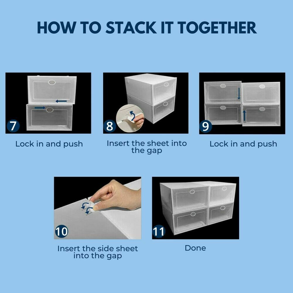 Crafted from high-quality plastic, each box is built for long-term use. The sturdy construction provides excellent protection for your shoes, preventing dust, moisture, and accidental squashing. Investing in this set means you get a dependable shoe storage system that stands up to everyday use.