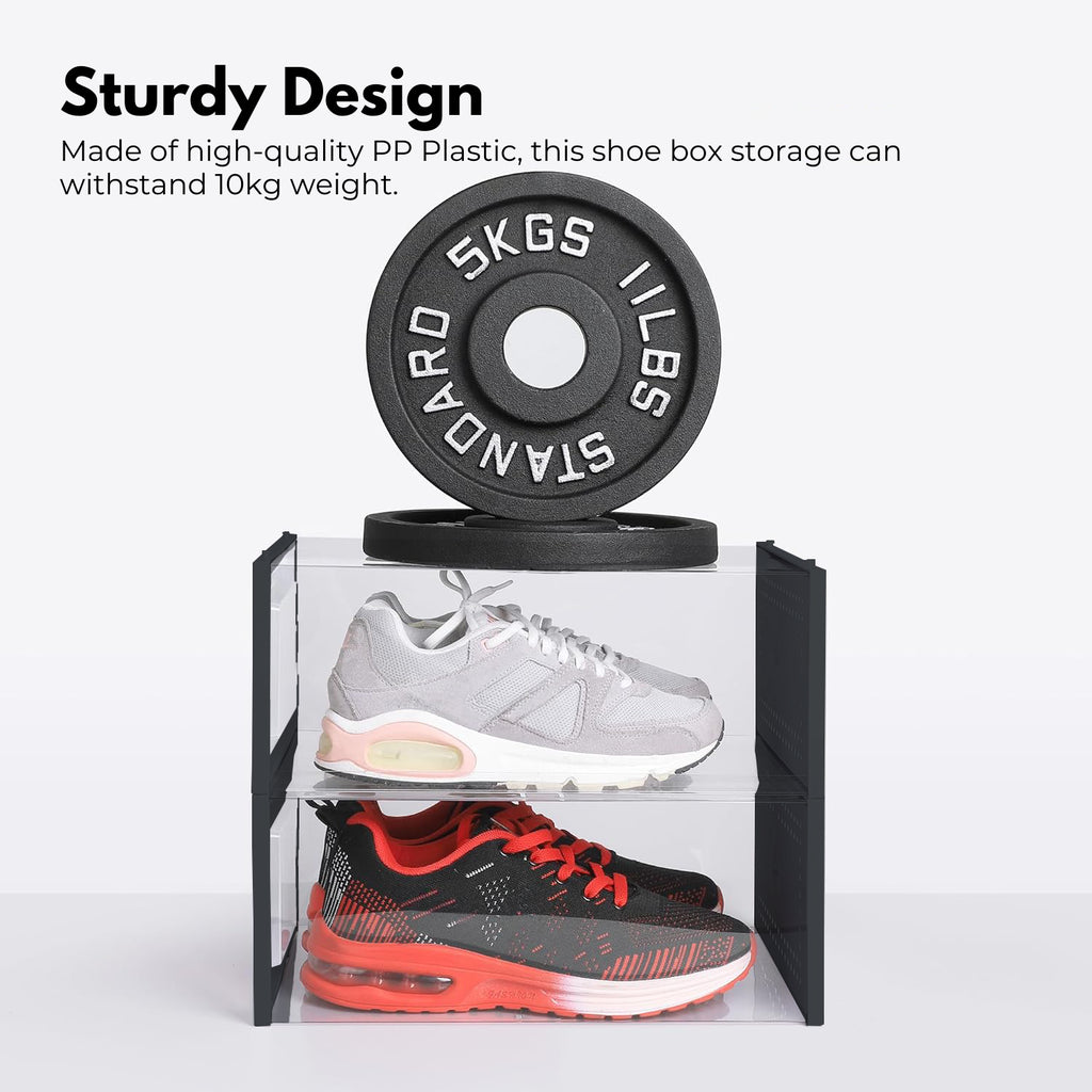 Upgrade your home with sleek, black transparent boxes that blend effortlessly with any décor. The clear front panel allows you to view and showcase your shoe collection without opening each box, adding a touch of contemporary elegance. Buy shoe storage that not only organizes but also adds style to your space.