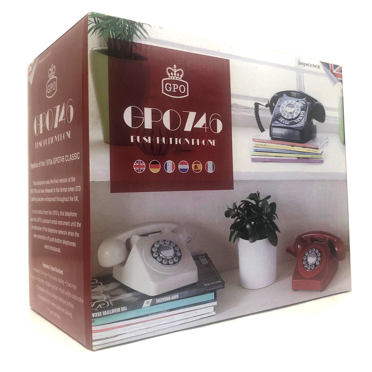 Designed in UK - The GPO 746 Rotary Push Button Telephone prides itself on its traditional and authentic look and feels with modern technology.