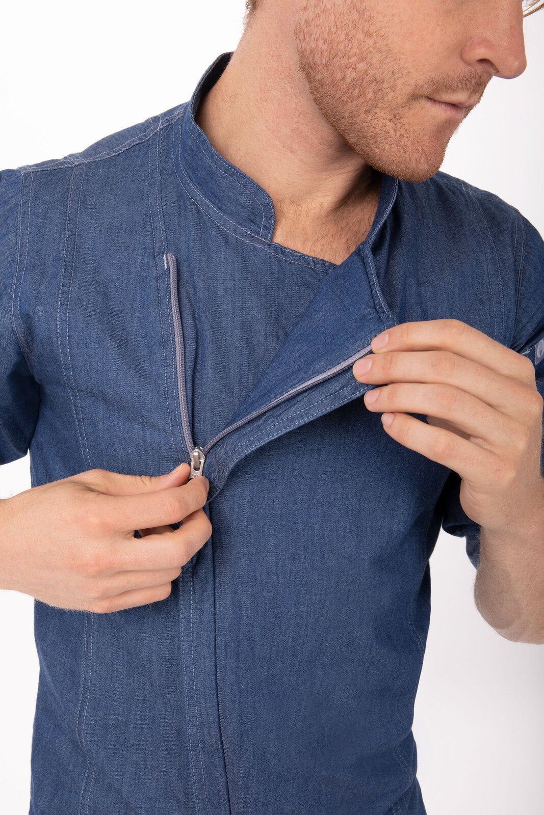 Gramercy Men's Denim Indigo Blue XS Zipper Chef Jacket by Chef Works